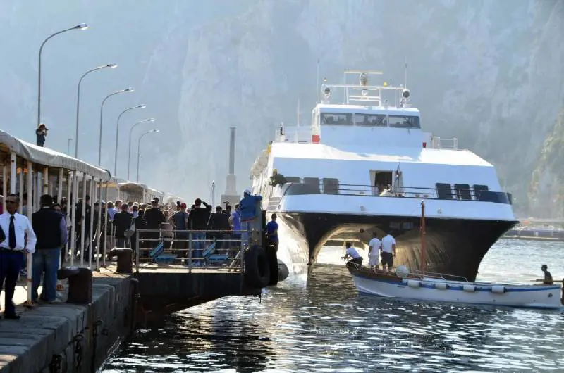 Tensioni con la polizia e molte proteste. È andata in scena a Capri l'annunciata protesta organizzata dalle associazioni dei giovani imprenditori e supportata dalle amministrazioni comunali di Anacapri e Capri. Per tutta la giornata i manifestanti hanno impedito l’attracco degli aliscafi sia da terra, sulle banchine del porto, sia con alcune piccole imbarcazioni in mare. Un mezzo della Snav ha anche provato più volte la manovra, senza riuscire ad entrare nel porto. Solo i mezzi della Caremar hanno potuto attraccare regolarmente e lasciare la banchina senza alcun problema. Proprio dei trasporti pubblici i sindaci di Capri e Anacapri avevano invitato i cittadini a servirsi, dopo l’aumento scattato venerdì scorso nonostante una diffida della Regione, che ha avviato l’iter per sanzionare le compagnie.