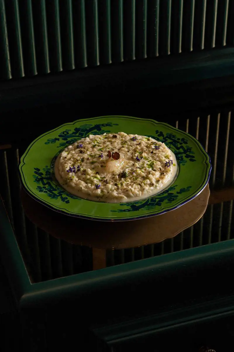 Il locale si chiama RaMe, è al numero 52 di via Piero della Francesca e si muove su un crinale preciso: nostalgia sì, ma con moderazione. L’idea è quella di un bistrot che guarda agli anni Trenta con spirito contemporaneo, costruendo un ambiente che privilegia la permanenza. Velluti, boiserie, una palette che gioca tra verde salvia e ottone brunito, tavoli ben distanziati e una luce studiata per non tradire né i volti né i piatti. Al centro, il bancone bar — rivestito in ceramiche verde bottiglia — è un omaggio dichiarato alla Golden Age della mixology.