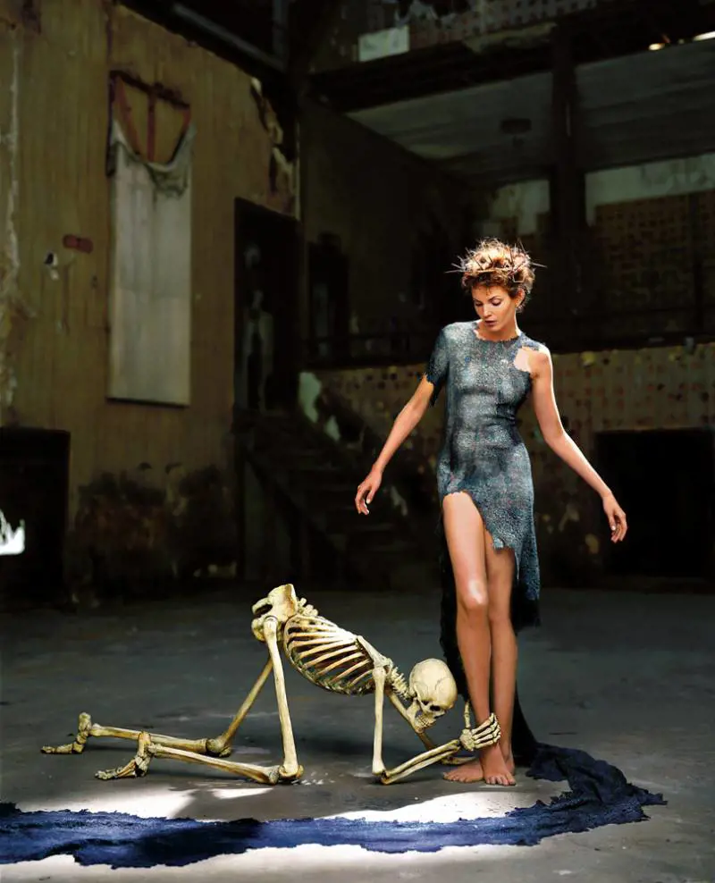 Comfort , pubblicato nel 1995 sul New Yorker : un racconto «noir», protagonista la top Nadja Auermann a interagire con uno scheletro. Alla Bellezza, nelle opere di Avedon, seguiva sempre la Morte. Nel tipico connubio caro a chi si vota alla perfezione.