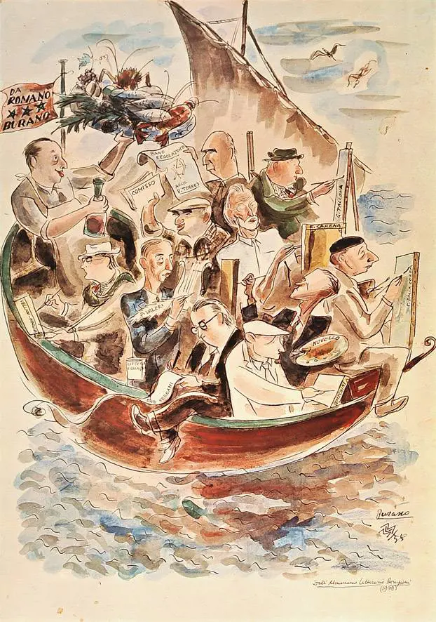 Da 40 anni la Galleria Ponte Rosso di via Brera 2 a Milano, stampa e mostra disegni, quadri e sculture che per l'occasione dell'apertura della mostra "Burano, isola dei pittori", si sono trasformati in un unico calendario con l'immagine portante della barca dei pittori della lauguna veneta per mano di Vellani Marchi. Sulla barca ci sono tutti e con loro persino l'oste o meglio il cuoco, il proprietario della trattoria amata dagli artisti di Burano, Romano.