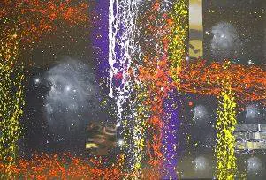La fotografia astronomica è una fotografia scientifica quindi razionale e rigorosa. Le mie immagini di nebulose vengono riprese volutamente in bianco e nero tramite l'ausilio di un filtro h-alpha che ne isola le frequenze di emissione evidenziando le strutture dell'oggetto che voglio riprendere senza dare una mia interpretazione personale sulle sue colorazioni. Cerco di essere (riprendendo in monocromia) il più imparziale possibile offrendo l'opportunità a chi osserva, tramite l'immaginazione e la curiosità, di documentarsi o semplicemente di fantasticare sul "reale" colore di tali oggetti. L'intento dei miei lavori però è quello di fare un omaggio all'uomo e alla sua essenza, un omaggio all'essere che rende reale il mondo che lo circonda prendendo coscienza dell’esistenza del mondo stesso......il tempo esisterebbe ugualmente se non ci fosse nessuno a contare? L'uomo non è solo razionalità ma anche irrazionalità, emozione, istinto e come meglio rappresentarle se non con dei colori intensi e l'atto gestuale della pittura? Qui è nata l'idea dell'astrodripping o meglio dell'action painting utilizzando le mie astrofotografie come tele. Nei miei lavori il soggetto viene ripetuto in serie per dare enfasi ad esso ma contestualmente la ripetizione porta alla negazione dello stesso o meglio alla presa di coscienza dell'impossibilità reale dell'uomo ( almeno per la tecnologia di cui dispone ora ) di interagire con questi oggetti lontani da lui anni luce. Proprio poiché la natura umana è centrale nei miei lavori mi piaceva l'idea che l'osservatore potesse intravedersi all'interno dell'opera, ho sfruttato quindi le proprietà di alta riflessione di un materiale utilizzato nella creazione di filtri per l'osservazione solare in luce bianca: il Mylar.