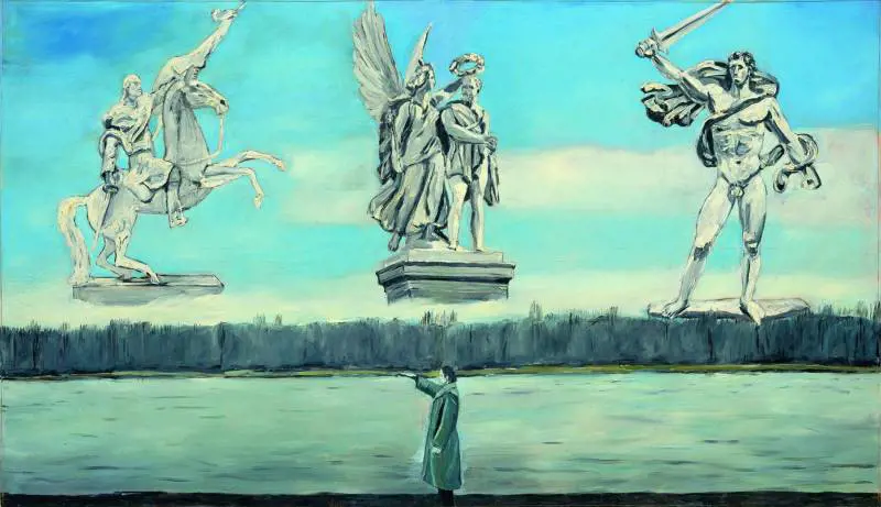 Attraversando l'ingresso della Royal Academy, dopo aver superato la colossale installazione Für Velimir Khlebnikov: das Schicksal der Völker (Il destino delle nazioni, 2011-2014), si entra dunque nel dominio dell'arte di Kiefer. Nelle prime sale si arriva subito al cuore della questione. Siamo al cospetto delle rovine dell'Europa dopo la Seconda guerra mondiale. Ha raccontato Kiefer: «Sono cresciuto nella Germania del dopoguerra. Un cumulo di macerie, giocavo con i mattoni delle case bombardate. Ma per me era bellissima, mentre oggi ha perso la sua identità». L'artista affronta la rimozione del nazismo e la mancanza di memoria del proprio Paese attraverso opere provocatorie, che lo fecero scambiare per un nostalgico del nazionalsocialismo. Eccolo dunque fare il saluto nazista davanti ai simboli del passato. Ciò accade sia nei libri, album ove sono raccolte foto e disegni poi usati come fonte d'immagini, sia nelle tele (come in Heroisches Sinnbild V , Simboli eroici V, 1970). Kiefer indaga i miti norreni, a esempio nella serie del 1973 su Parsifal , ricostruisce eventi militari ( Unternehmen Seelöwe , Operazione Leone marino, 1975), reinterpreta l'architettura nazista ( Dem Unbekannten Maler , Al pittore sconosciuto, 1983). Sono presenti numerose allusioni all'Olocausto e un profondo interesse per la cultura ebraica in opere come Sulamith (1983). La riflessione sul passato nazista, cos'è in fondo se non la ricerca di senso nel passato più buio e incomprensibile?
