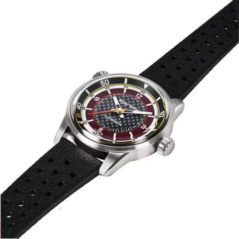 Wyler Vetta ha realizzato una collezione mirata “X MV Agusta”, in cui sono presi in considerazione le linee, i materiali e i codici cromatici che hanno reso il brand motociclistico un must per gli appassionati. Stiamo parlando di un Cronografo, dotato del calibro ETA 2894 Bicompax, con riserva di carica di 42 ore - edizione limitata ad 80 pezzi – e di un solotempo automatico animato con il movimento La Joux Perret G100 - serie limitata di 500 esemplari - , con un’autonomia di 68 ore. Entrambi prevedono una cassa in acciaio di 40 mm (spessore di 12,6 mm per il cronografo e 10,9 mm per il solotempo), con fondello a vite e a vista, impermeabile fino a 10 atmosfere e sono completati da cinturino in pelle brown (il crono, in alternativa al bracciale e il solotempo, ad un cinturino in gomma traforata nera). Protagonista assoluto di questi modelli è il quadrante: al centro, la fibra di carbonio richiama il materiale di elezione delle motociclette sportive, simbolo di performance, mentre il fondo rosso verghera è una citazione della livrea storica di MV Agusta.