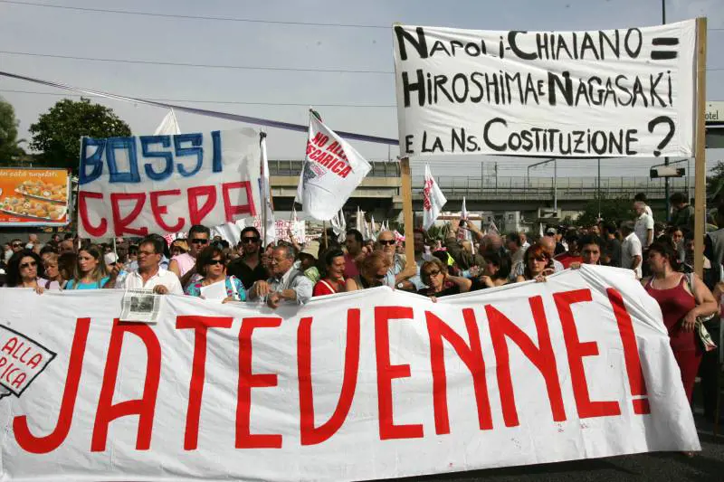 Se tutto è filato liscio, senza nemmeno l’ombra di tensioni con polizia e carabinieri, tra le rivendicazioni ambientaliste e sul «diritto alla salute» non sono mancati slogan di dubbio gusto. Quasi in testa al corteo spiccava uno striscione bicolore: «Bossi crepa». E dai megafoni qualcuno ha più volte augurato al leader del Carroccio una fine prematura. Anche Berlusconi, soprattutto dopo aver «anticipato» il verdetto di idoneità per la cava di Chiaiano, finisce preso di mira. Ma i cori più numerosi e gli insulti più frequenti sono per il sindaco Rosa Russo Iervolino e per il governatore Antonio Bassolino, paragonato a un personaggio dei Simpson, il cattivissimo padrone della centrale nucleare di Springfield, Montgomery Burns.