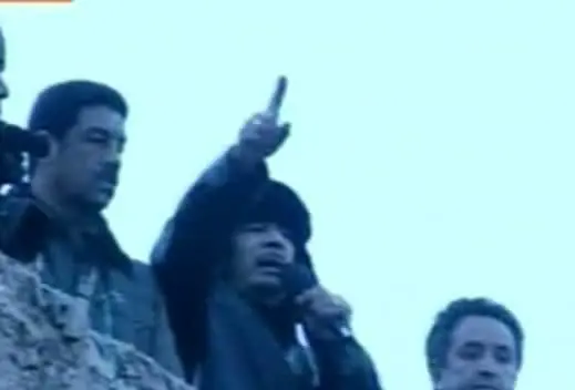 Il colonnello ha fatto la sua apparizione nella Piazza Verde con le prime ombre della sera arringando la folla di sostenitori, tutti pronti, almeno a parole, a dare la vita per la guerra civile alle porte. «Possiamo respingere qualsiasi aggressione se necessario e aprire gli arsenali per armare il popolo libico. Assieme uccideremo chi protesta» ha tuonato Gheddafi dai resti della fortezza ottomana che domina la piazza. «Guardatemi, sono con voi per incoraggiarvi e salutarvi. Cantate, ballate e siate felici!» ha invitato il colonnello, che per la prima volta dall'inizio della rivolta è apparso in pubblico. «Non sono nè presidente, nè capo del governo, ma il popolo mi ama - sostiene -. Se c'è qualcuno che non ama Muammar Gheddafi non merita di vivere!». E cita pure il nostro Paese, ricordando con orgoglio di «aver recuperato la dignità del popolo riuscendo addirittura a farci pagare i danni dall'Italia».