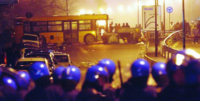 Verbale di Ciro R., autista di un pullman sequestrato dai teppisti: «Erano 15, con sciarpe e cappucci, davanti al bus, davano calci e pugni, quindi sono saliti armati di coltelli e bastoni, mi hanno obbligato a mettere l’autobus di traverso, poi hanno bucato le ruote, fuori incendiavano tutto...».