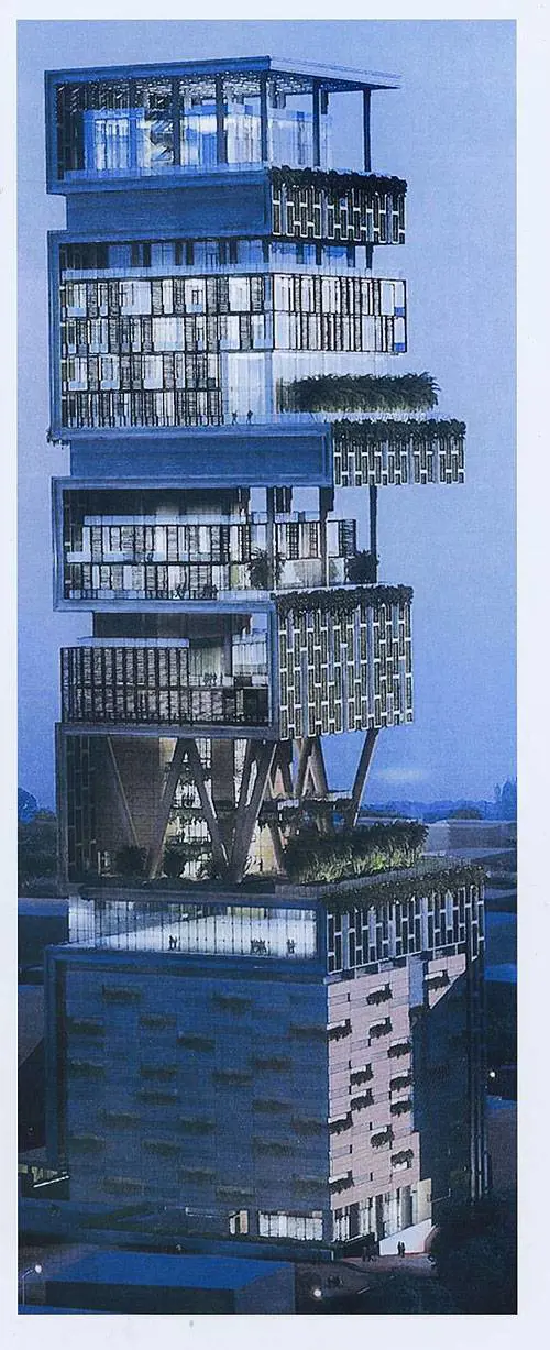 Dal tetto della loro casa gli Ambani potranno godersi un panorama unico su Bombay. Anzi, «una vista completa su tutto il mare Arabico», secondo i progetti del padrone di casa, svelati ieri dall’Independent. I proprietari - mamma, papà e tre figli - abiteranno gli ultimi quattro piani. Come tradizione comanda, un piano intero sarà riservato alla madre di Ambani. Il resto del grattacielo sarà occupato da una palestra, un cinema, una sala da ballo, due piani per gli ospiti, un giardino e altri tre piani a terrazza. I primi sei piani sono destinati a far da parcheggio per le 168 vetture di casa, il settimo è una sala di manutenzione e il nono un locale di emergenza, in caso di evacuazione. Ognuno dei 27 piani è diverso nel design e nei materiali: così ha voluto la signora Ambani, seguace del Vaastu, versione indiana del Feng shui.