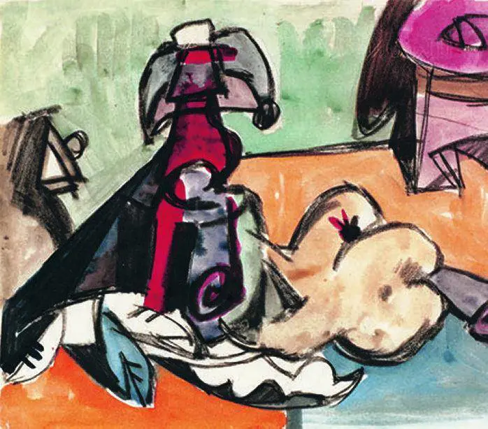 Ha tinte marezzate e pennellate vibranti Maschera, è un paesaggio fantastico come un capriccio veneziano la Basilica di Massenzio. Splendide le nature morte dal formato lungo e stretto.Galleria Russo tel. 06-6789949. Opere su carta (1936-1948). Galleria Francesca Antonacci tel. 06.45433036. Dipinti (1935-1947).