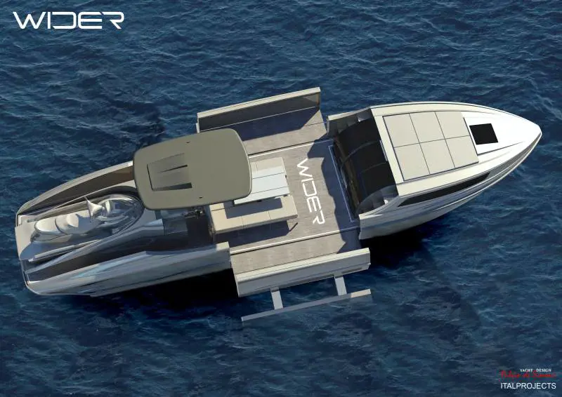 Come si legge nella scheda curata da Laura Vanessa Carboni, communication manager del nuovo cantiere di Calstelvecchio di Monteporzio, «Wider» inaugura un concetto straordinario: una barca dalla forte connotazione design, da pilotare e godere in un incredibile mix di adrenalina e divertimento, un «parco giochi» da vivere in mare aperto.