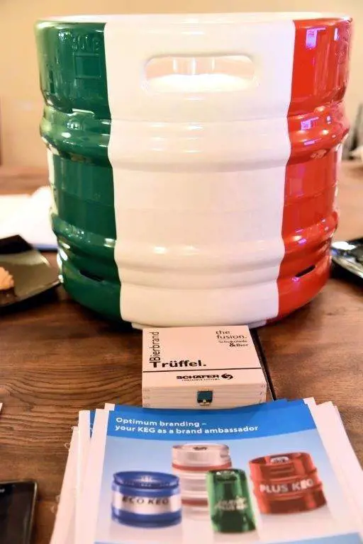 Così, alla presentazione dei prodotti, a Milano, c'era un grande keg tricolore che campeggiava tra le linee dei prodotti made in Germany con una serie di novità per quanto riguarda i contenitori a rendere per il beverage, adatti alle birre, ai soft drink e alle bevande non gasate grazie alla possibilità di adattare il gas di spinta e con tipologie da cinque a cinquanta litri, caratterizzati da diversità di forma e quindi facilità di inserimento ad esempio nelle birrerie, leggerezza, praticità d'uso dei sistemi di spillatura (freshKeg e smartKeg) e possibilità di personalizzazione del brand.
