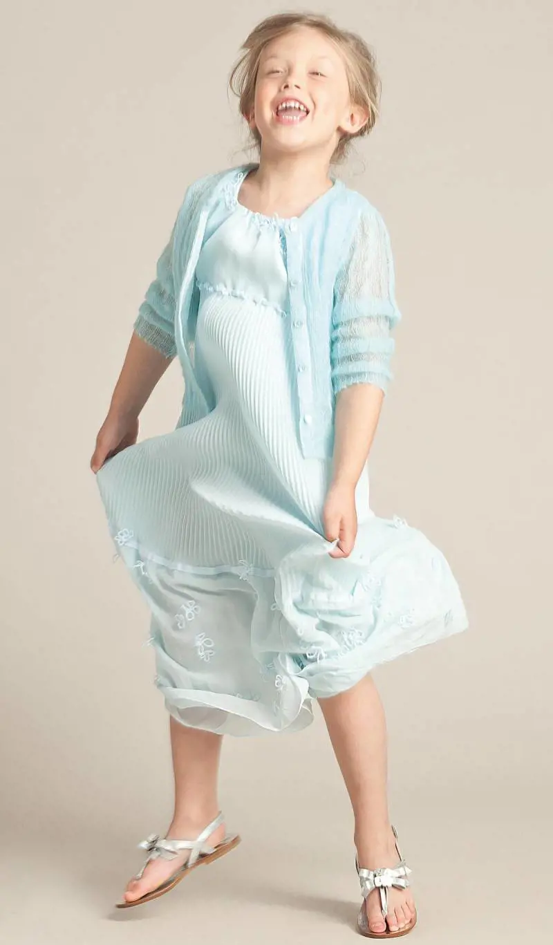 Bouquet di fiori, macro pois, grandi check e piccoli quadretti Vichy sono i disegni preferiti per le fanciulle tornate ad essere tali soprattutto con gli abiti di taffettà e con le gonne a palloncino di tulle sfumato. Come per le mamme, anche le bimbe amano i vestiti leggeri portati con sottovesti per renderli vaporosi, le sovrapposizioni di T-shirt e canotte, i preziosi abiti per le cerimonie in voile, mussole e organze plissettate dai colori tenuti come il rosa pallido e il ciclamino dotati di copri spalle ricamati. I maschi sono più pragmatici e non hanno dubbi sulla loro divisa: blu e bianco in stile marina, tessuti Oxford, piquet, lini e felpa per i blazer, maxi righe stile regimental. Come tanti capitan Nemo si presentano all'appello delle feste e delle occasioni speciali con tanto di giacca di lino bianco o beige ma anche grigio, pantaloni d'ordinanza, camicia cravatta o papillon. Insomma, e per fortuna, piccoli elegantoni crescono. Certo, la parte del leone la fanno le proposte daywear, pensate per la città e progettate in colori vitaminici come gli azzurri del mare, i verdi della vegetazione, gli arancio dei neon.