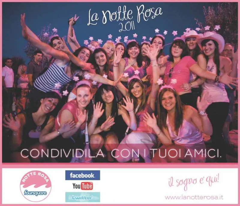 Il Capodanno dell’estate italiana cresce ancora e porta i suoi colori anche sulla rete sociale di internet. Con una serie di iniziative pensate per portare il pubblico dentro il "racconto attivo" della Notte Rosa e accrescere ulteriormente il tasso d'innovazione della kermesse che si terrà il primo luglio. E allora, in parallelo agli eventi principali dell’edizione 2011 correranno anche una caccia al tesoro mobile con Foursquare, la diretta web degli eventi principali, una copertura capillare dei 110 km di festa attraverso Twitter, YouTube e Facebook.
