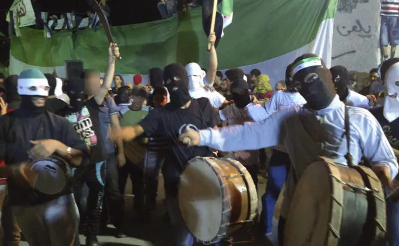 I passamontagna, tutti uguali nella foggia, suggeriscono unorganizzazione molto più militarizzata di quella di Piazza Tahrir. Poi c'è la simbologia, più o meno subliminale. Le fascette intorno alla fronte esibiscono solo i colori della bandiera siriana antecedente alla presa di potere del partito Baath e del clan degli Assad. Ma quella fascia alla fronte richiama anche le bandane con i versetti del Corano esibiti dai kamikaze del terrore fondamentalista.