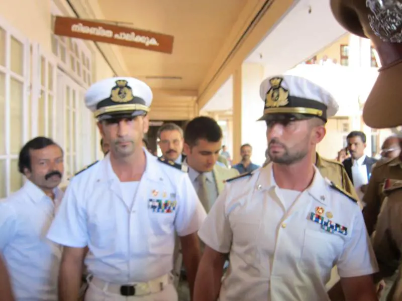 Quando vengono fatti sbarcare è presente una corposa delegazione italiana, che non riesce ad evitare il peggio: Gianpaolo Cutillo, Console generale a Mumbai, gli ammiragli Franco Favre, addetto militare all’ambasciata italiana a New Delhi e Alessandro Pirosi, capo del Terzo reparto pianificazione della Marina. Poi ci sono altri due ufficiali inferiori, Marco Mattesi e Francesco Marino oltre al consigliere legale Jean Paul Pierini.