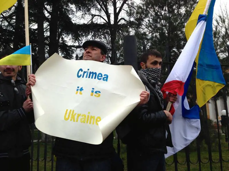 Una miscela esplosiva, mentre a Simferopoli, capitale della penisola contesa sono riapparsi, dopo l’occupazione dei soldati del Cremlino, i manifestanti che non vogliono l’annessione alla Russia gridando “la Crimea è Ucraina”.