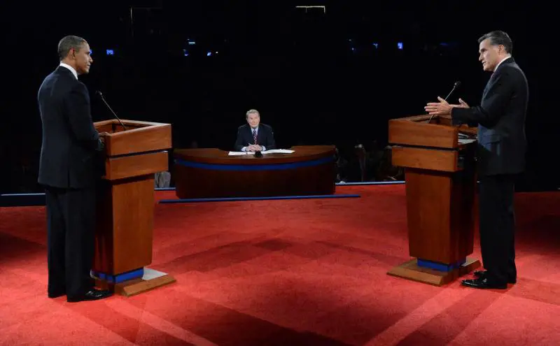 Romney usa la chiave dello scherzo per pungere il leader democratico su un tema classico dei repubblicani: il governo troppo invadente, con troppe regole: «Presidente, lei può comandare sulla sua casa, sul suo aereo, ma non sui fatti degli altri». Sul togliere gli sgravi alle imprese che delocalizzano: «Sono stato 25 anni negli affari. Non ho idea di cosa lei stia parlando. Forse ho bisogno di un nuovo contabile, ma l'idea di chi vuole penalizzare chi spedisce posti di lavoro all'estero, non mi sembra proprio il caso». E poi la stoccata rivolta al moderatore della tv pubblica, ma in realtà mirata a ribadire la volontà di tagliare la spesa pubblica: «Mi dispiace, Jim, io fermerò i sussidi alla Pbs. Anche se la Pbs mi piace, e anche tu»