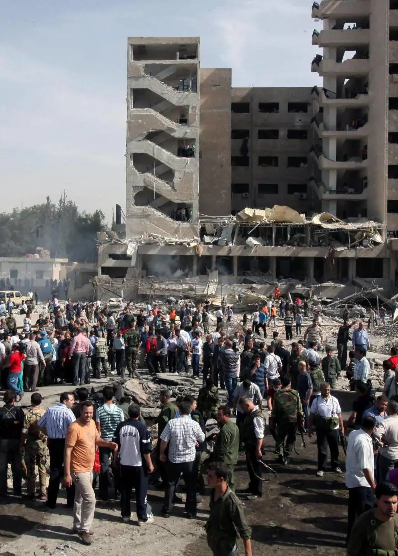Un furgone imbottito di tritolo e un'utilitaria con centinaia di chili di tritolo sono esplosi ieri mattina a Damasco. Teoricamente l'obiettivo doveva essere il comando della divisione dei servizi di sicurezza nel quartiere Qazan, periferia meridionale della capitale. La scelta dell'orario mattutino, un classico dei terroristi suicidi, e la posizione vicino al trafficato incrocio di una superstrada ha provocato una strage di civili e adolescenti che stavano andando a scuola. Un testimone ha parlato di 11 bambini uccisi.