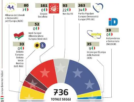 I numeri, nella loro schiettezza, parlano chiaro. Il Ppe, stando alle stime che circolano a Bruxelles, dovrebbe poter disporre di un numero di parlamentari oscillante fra i 267 e i 271. Il successo spinge l’Italiano Mario Mauro verso la presidenza dell’Assemblea. Il Pdl non è il primo gruppo all’interno dei Popolari, l’Italia potrebbe farcela. Ieri l’ha confermato anche il ministro degli Esteri Frattini: «Troveremo un accordo». Il Ppe sfonda, quindi. I socialisti arretrano: avranno un centinaio di eurodeputati in meno (fra 157 e 161) rispetto ai rivali. Un'ottantina potrebbero essere i Liberaldemocratici, 54 i Verdi, 35 le Destre, 17 gli «euroscettici» e 34 quelli della sinistra europea. Fra 85 e 90 seggi sono dunque quelli al momento vanno appannaggio dei cosiddetti «altri».