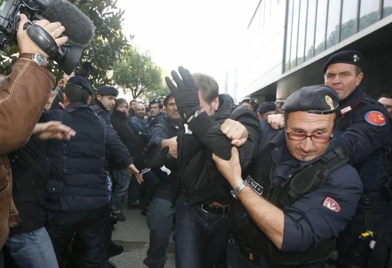 Il blitz dei vigilantes Una quindicina di guardie private ha fatto irruzione urlando e intimando minacciosamente ai dipendenti di uscire. Il gruppo di guardie ha dichiarato di essere della polizia. Alla vista della telecamera di un giornalista della Rai, che era all’interno dello stabilimento per girare un servizio sull’occupazione, i finti poliziotti guidati dal proprietario dell’azienda, Samuele Landi, hanno chiesto alla troupe i documenti. Federico Ruffo, giornalista della trasmissione di Rai Educational Crash, si è accorto di non avere davanti dei poliziotti e a quel punto ha rifiutato di consegnare i documenti e ha chiamato la polizia, che è intervenuta alle 4 e mezza, identificando i componenti della falsa squadra e il proprietario dell’azienda, facendoli immediatamente uscire prima che la tensione degenerasse in scontri fisici. La Digos acquisirà i nastri della registrazione per stabilire esattamente come sono andate le cose.