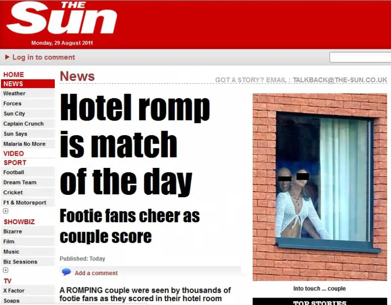 Bruxelles - A giudicare dal tifo sugli spalti, il match che coinvolgeva il Sint-Truiden, squadra di calcio belga, doveva essere eccezionalmente ricco di emozioni. Ma le ovazioni del pubblico questa volta non erano dedicate al beniamino della squadra del cuore, nè tanto meno a una gara eccellente del team, quanto invece a una prestazione di altro tipo, che si stava svolgendo a pochi metri di distanza dallo stadio. Protagonisti della prestazione Alicia Tenderness e fidanzato, alloggiati in un albergo con vista sullo stadio, beccati da un'intera ala del campo sportivo a esibirsi in effusioni piuttoste spinte, davanti alla finestra della loro stanza d'albergo. Una domenica differente per i tifosi della squadra di calcio, che si sono adattati rapidamente alla situazione, indirizzando alla coppia i cori normalmente riservati a incitare la propria squadra del cuore.