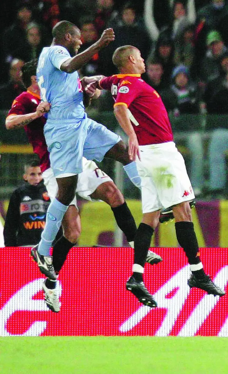 Il gol di Lavezzi (partita superba la sua) dopo 100 secondi che coglie la difesa della Roma impreparata, ma soprattutto latteggiamento tattico preparato da Reja, con cinque centrocampisti, mette in crisi la squadra giallorossa. Che per mezzora tenta improbabili tiri dalla distanza, evidenziando una manovra farraginosa e lenta. Sulla quale ha buon gioco la squadra di Reja, ben raccolta sulle avanzate giallorosse e pronta a scattare in contropiede, grazie alle giocate del ventenne Hamsik. Nato come centrocampista di destra e trasportato a sinistra, con ottimi risultati, dal tecnico del Napoli. Poi il rigore di Paolo Cannavaro su Pizarro (ottima lintuizione di Totti). Il capitano trasforma il penalty e raggiunge quota 158 gol in A, collezionando lennesimo record. La Roma sembra rimettere in piedi il match, tanto che lerrore di Iezzo favorisce la rete di Perrotta (che si puntella il piede come un falegname, quasi a esorcizzare i recenti errori sotto porta e poi festeggia con Curci la nascita del piccolo Gianfranco).