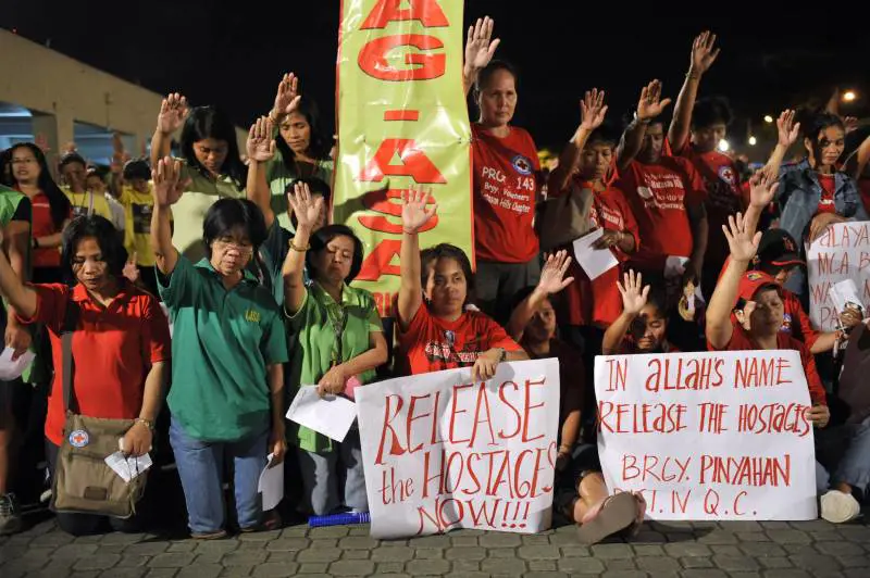 Le unità speciali dell’Esercito delle Filippine incaricate di salvare i tre addetti della Croce Rossa continuano dal canto loro a sostenere che i ribelli sarebbero ormai circondati in un ristretto lembo di foresta, dal quale non potrebbero più uscire: ma dopo un mese e mezzo la situazione non ha fatto registrare alcun progresso; anche se i militari ribattono che non hanno ancora lanciato un attacco a tutto campo per salvaguardare l’incolumità degli ostaggi, e permettere la prosecuzione dei negoziati, affidati a notabili locali. Abu Sayyaf, almeno fino a un recente passato finanziato direttamente da ’al-Qaedà, negli ultimi tempi è stato costretto a procacciarsi da solo il denaro con cui proseguire le operazioni di guerriglia, soprattutto attraverso i sequestri.