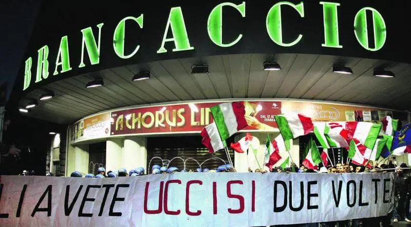 «Li avete uccisi due volte». Duro, ma esplicito lenorme striscione esposto ieri pomeriggio da un centinaio di attivisti di Blocco Studentesco e Fiamma Tricolore piazzati con tricolori e bandiere dellIstria davanti al teatro Brancaccio. Nessun incidente, solo rabbia e sgomento per limprovviso annullamento, deciso dalla dirigenza del teatro, della conferenza «Anche le pietre parlano italiano, una giornata organizzata in ricordo, della strage delle Foibe».