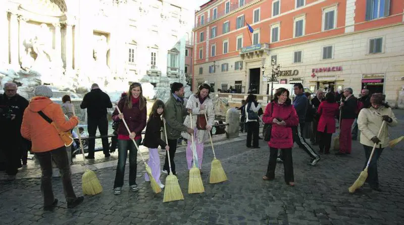 Fontana di Trevi, guerra di scope