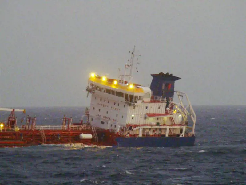 00, il mercantile è rimasto sul posto e i soccorsi si sono concentrati sulla nave cisterna,. La nave dovrebbe arrivare nel porto di Brest a fine pomeriggio. Il mercantile Hanjin Rizhao, battente bandiera panamense, è stato autorizzato a proseguire la rotta verso il porto di Rotterdam, in Olanda.