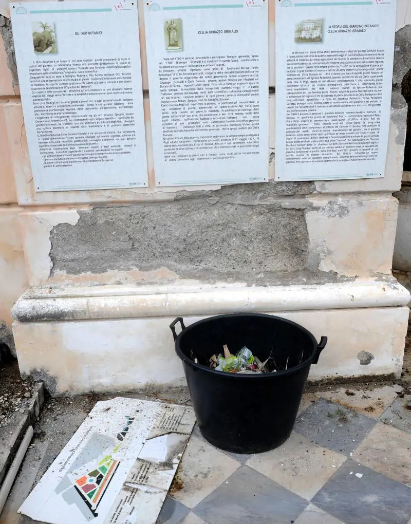 Benvenuti in questa oasi naturale, dove una delle immagini forse più esaustive di ciò che resta dellantico splendore di un parco e di una villa, è un secchio nero e sporco pieno di calce, rifiuti e materiale di scarto accanto a quello che doveva essere il cartello dinformazioni e che ora invece sta ad ammuffire a terra: «Giardino botanico Clelia Durazzo Grimaldi», appunto. Benvenuti, o malcapitati verrebbe da dire, in una delle tante, tantissime bellezze di questa città completamente lasciate andare al loro destino, senza alcuna cura per il valore che esse rappresentano. Agli occhi di chi le vede e per il senso di bellezza che dovrebbero comunicare. Invece qui, il cuore si stringe e si fa piccolo, gli occhi si allargano dallo stupore. E la domanda è sempre, la stessa: ma come è possibile?