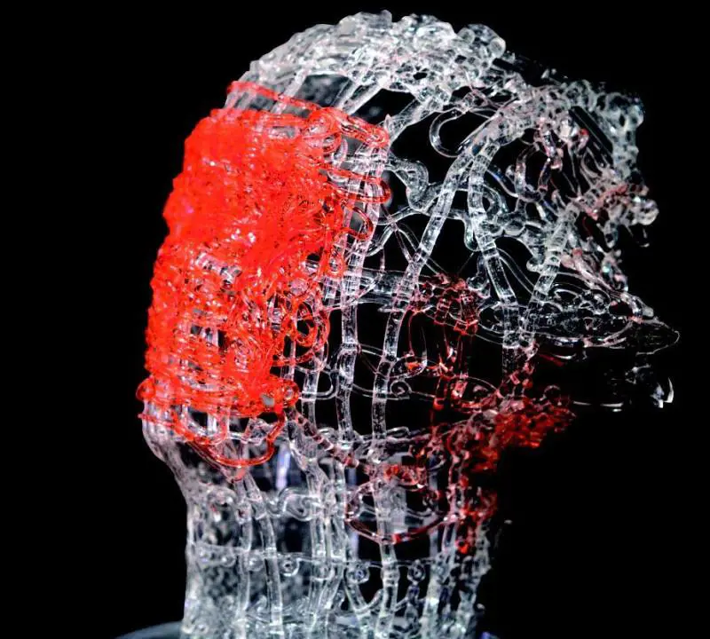 A queste sculture in methacrylate-optix fanno contrappunto i brani in poliwood, un composto di propilene, polvere di legno e metallo che nelle mani della Vendola si fa sudario da cui emergono, ancora, volti e corpi, come quelli che incontriamo vicino alla tomba del Boccanegra, primo doge genovese.Se dal materiale delle auto nasce una nuova forma darte