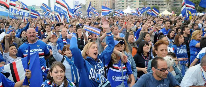 Ore 22 e 45 di sabato 9 giugno. Tredici mesi dopo finisce l'incubo. La Sampdoria torna nella massima serie. Serie A per farla breve. Con un gol di Pozzi allultimo respiro che scaccia anche i fantasmi. Se in campo a Varese i gavettoni non servono visto il nubifragio che ha accompagnato il match, e tutti i suoi protagonisti, a Genova esplode la festa. Si comincia da Piazzale Kennedy che riceve sempre più gente in attesa dell'arrivo del pullman con gli eroi. Quelli che hanno compiuto un'impresa. A fine gennaio erano 11 i punti di distacco dai play-off. La città per una notte si colora di blucerchiato. Non è mancato qualche tradizionale tuffo improvvisato nella fontana di Piazza De Ferrari. Clacson ed urla non lasciano dormire tranquilli gli abitanti delle zone limitrofe al centro ed alla Foce. Inevitabile - e come poteva non esserlo cominciano gli sfottò verso i cugini rossoblù. Il derby della Lanterna tornerà. Il coro «Chi non salta è un genoano» si leva sempre più forte. La festa continua, mentre l'alba si affaccia sulla città.