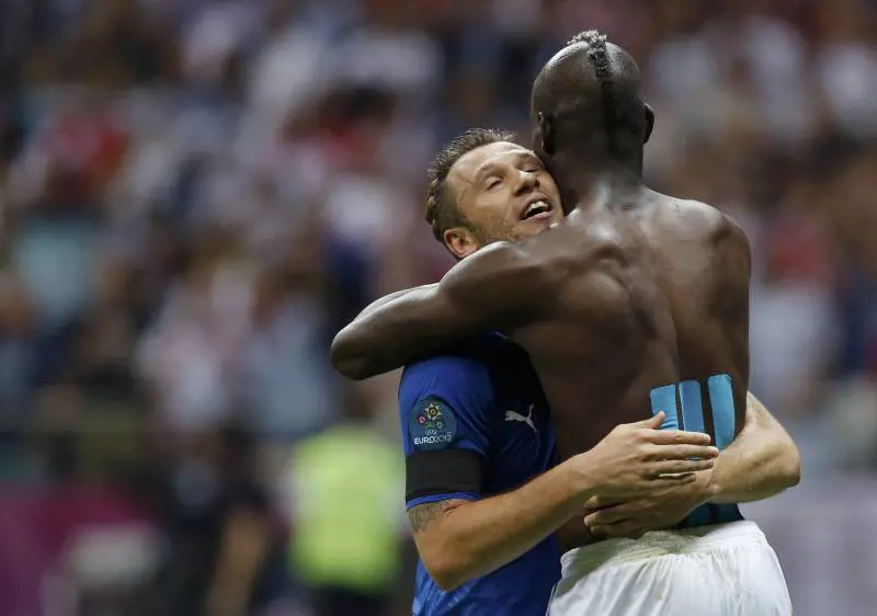 E' Balotelli show. L'Italia parte col turbo e vince anche con il rigore della Germania a pochi minuti dal fischio finale. Lo spettacolo ha un nome un cognome, quello del giocatore bresciano. Mario Balotelli segna di testa al ventesimo del primo tempo su assist di Antonio Cassano. Al trentaseiesimo del primo tempo il bis: il destro di Balotelli beffa il portiere tedesco e consegna all'Italia il secondo gol. Lo stadio esplode e la Penisola gli fa eco. Balotelli, in barba alle regole, si toglie la maglietta e festeggia coi compagni. La Germania, spiazzata, non riesce più a prendere in mano il gioco.