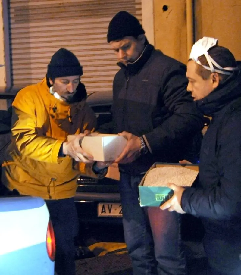 suoi collaboratori, nell'aprire i bagagli ritirati alla stazione