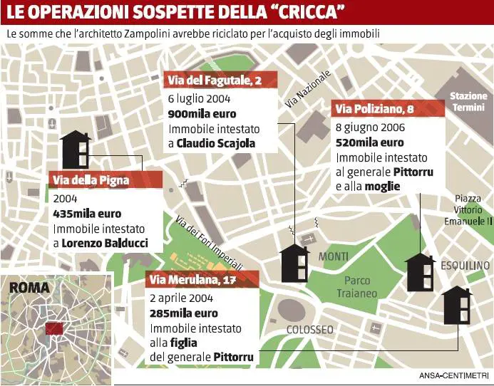 Il generale Francesco Pittorru, uno dei pezzi forti delle Fiamme gialle e poi dei servizi segreti, finisce risucchiato dentro la lista Anemone. Una manina servizievole ha pagato la casa scajolana con vista sul Colosseo? Lui ha fatto di meglio, ne ha avute due: una per figlio. Imbarazzante. Ma nessuno protesta, circonda la piccola reggia o srotola striscioni. Nemmeno quando l’alto ufficiale prova a mettere su questa storia una pezza alla Arlecchino. Un documento, una scrittura privata, proverebbe che sì Anemone ha sborsato quelle cifre, ma era un prestito. Chiede tempo il generale e dice che in Sardegna custodisce la carta ammazza-Anemone. I magistrati gli danno tutto il calendario che vuole, figurarsi, lui va e torna a mani vuote. Quelle carte, sfortunatamente, gli sono state rubate. Sembra una pessima riedizione dell’Italietta badogliana che a cavallo dell’armistizio gioca all’equivoco, fa finta di non capire i proclami degli alleati ma mette in salvo i conti e non sa cosa sia l’onore. Il generale 007 se ne va? Per ora non è schiodabile e resta all’Aisi.