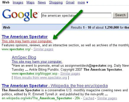 Qualunque ricerca (anche le più innocue come “Google” o “Barack Obama”) riportava, sotto gli URL, la dicitura “questo sito potrebbe arrecare danni al tuo computer”.