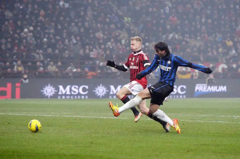 Servirebbe una scintilla per accendere il derby e dargli luce, una luce abbagliante che invece resta ai lati di San Siro mai nascosto dalla nebbia che avvolge il resto della periferia. La scintilla iniziale è la punizione arcobaleno di Maicon che Thiago Motta, di testa, gira alle spalle di Abbiati con potenza e precisione: l'assistente Copelli è il primo a sollevare il dubbio, non per Thiago partito in mezzo al mucchio, semmai per altri due neroazzurri, Samuel tra questi, rimasti oltre la linea della difesa rossonera. Perciò Orsato non tradisce alcun dubbio e anzi lascia scorrere il derby dominando tutti gli scontri, feroci e non, con qualche fischio autorevole, imponendo un metro inglese.