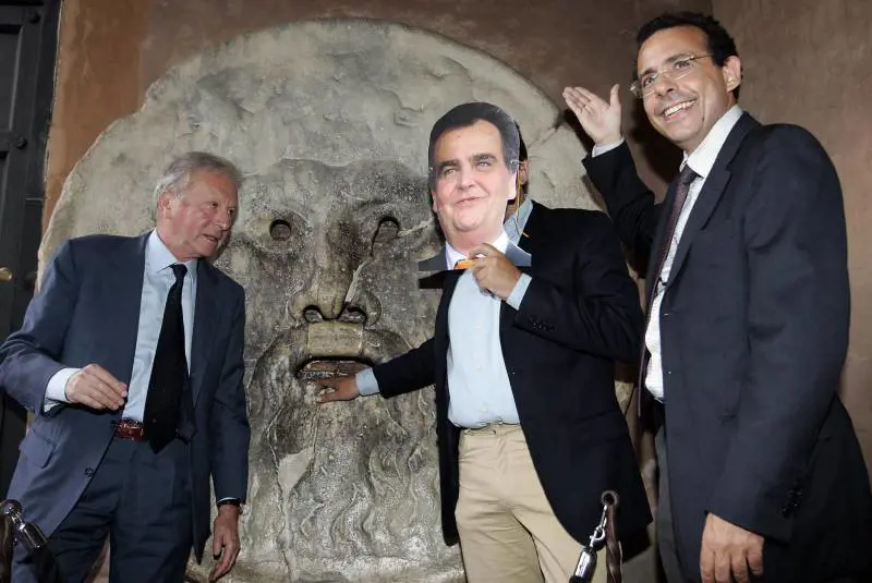 La bocca della verità Il comitato promotore inaugura davanti alla Bocca della verità la sua campagna "contro le candidature multiple e per il bipartitismo: per una legge elettorale che elimini le coalizioni politiche, in cui non si fa altro che una continua rissa". Improvvisano una piccola messa in scena, i referendari, per rendere il senso della loro battaglia. Lorenzo Cursio, responsabile del comitato promotore romano, indossa una maschera con il volto di Calderoli e mette la mano nella Bocca della verità.