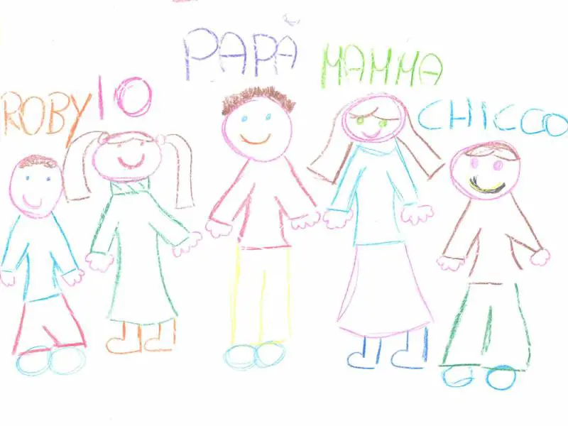 Buona appare anche l'identificazione con la mamma (vedi soprattutto l'acconciatura e i capelli), mentre sembra, nonostante il buon inserimento in famiglia, che il fratellino Chicco le crei qualche problema poiché lo ha collocato vicino alla mamma e ha colorato la bocca, simbolo della comunicazione, col colore nero indice del disagio che egli, volente o no, le crea.