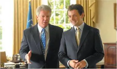 Di conseguenza I due presidenti, una produzione televisiva di qualità anglo-americana (Bbc e Hbo), non nasconde le simpatie per Bill Clinton anche nella scelta dell’interprete, un attempato Dennis Quaid con 15 anni di differenza (quasi il doppio che nella realtà) con il collega nel ruolo di Blair. Così il personaggio tragico di Clinton, sul viale del tramonto dopo la famosa «relazione inopportuna» con la Lewinski e ormai in balia dell’ingombrante carriera politica Hillary, non può non fare tenerezza. Anche per le sue poco profetiche analisi politiche: «Abbiamo le mani sul joystick della storia e il futuro è nel centro-sinistra».