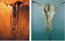 Il caso però si sta ingrossando. È in giro un dossier documentatissimo atto a smascherare le troppo frequenti «ispirazioni» del perfido Damien, che riguardano sia dei carneadi, sia artisti piuttosto famosi tra gli addetti ai lavori. Lo ha compilato Charles Thompson, fondatore del gruppo Stuckist, mostrando e dimostrando con raffronti fotografici che Hirst è un saccheggiatore professionista. Alcuni degli exploit più clamorosi li avrebbe rubati in particolare al misconosciuto John LeKay, a seguito di un periodo di frequentazione nel 1992. Allora LeKay viveva a New York e Hirst, che visitando il suo studio si accorse del talento inespresso del collega, dopo averne osservato a lungo le opere, gli disse: «Spiegami come fare a conquistare l’America come fecero i Beatles». Him, la gigantesca scultura del corpo umano che Hirst ha realizzato nel ’99 e per la quale era già stato accusato di plagio da un designer, è sorprendentemente simile a Yin and Yiang di LeKay (1990), così come In the Name of Father (2005), la carcassa di animale squartato, riprende in modo sospetto un lavoro che l’altro eseguì nel 1987, venduto a 3.500 sterline. Una miseria.