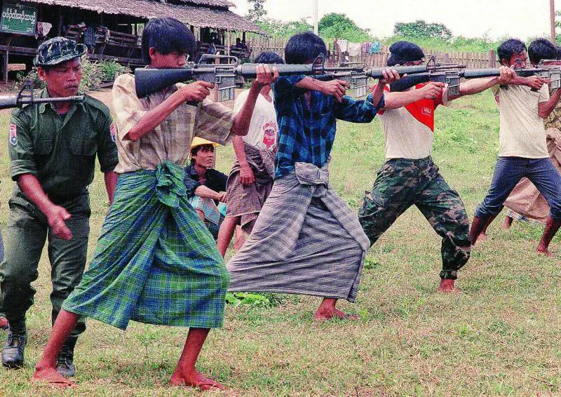Bla Tun (Birmania orientale) - Un brulichio di armi e divise anima la giungla, due vesti arancione si sporgono dalla terrazza di bambù. Il maggiore alza al cielo il mitragliatore, due mani si congiungono in segno di pace, un monaco più giovane fa segno di avvicinarsi. Ora il brulichio prende corpo, vita e colore. Due pattuglie del 203° battaglione karen circondano il villaggio, controllano le vicinanze, fanno scudo al grosso che avanza. Il resto della compagnia sbuca dalla boscaglia, le armi spianate e un’appendice di ombrelli colorati e ragazzine sorridenti alle spalle. L’eco del peykley, il gong dei monasteri birmani saluta l’arrivo dei guerriglieri karen, risveglia questo villaggetto alle pendici della collina a un tiro di schioppo dall’accampamento delle truppe birmane. Il maggiore infila l’entrata della terrazza, tende la mano ai due monaci, si tira dietro quel gruppuscolo di ragazzine e civili. Un enorme Buddha dorato risplende all’altra estremità del tempio di canna e paglia intrecciate. Al suo fianco un civile sbraita in un microfono, chiama a raccolta chi ancora fra le duecento anime di Bla Tun non si è reso conto dell’avvenimento.