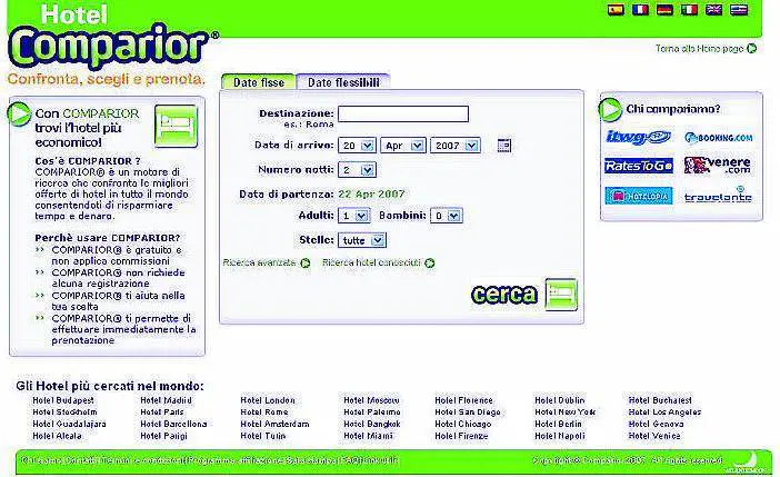 È totalmente gratuito, non richiede alcuna registrazione e non applica commissioni sui prezzi esposti, che sono sempre quelli effettivi di vendita. In tutti i paesi, ed anche in Italia, il settore dei viaggi per tempo libero e daffari è uno degli ambiti di maggiore fermento delle-commerce, con un incremento annuo delle vendite di oltre il 40% ed un fatturato totale nel 2006 di oltre 200 miliardi di dollari. I viaggiatori più attenti hanno verificato nel tempo leffettivo risparmio dellacquisto on-line rispetto al canale tradizionale delle agenzie viaggio, che arriva sovente anche al 30% della tariffa. Comparior evita al viaggiatore di rimbalzare di sito in sito per cercare la migliore tariffa, uscendone confuso e perdendo molto tempo. Anche la spesa assicurativa è una voce importante del risparmio familiare, specie per quanto concerne lRc auto.In questo settore il sito di riferimento è da anni www.6sicuro.it. Anche in questo caso non è richiesta la registrazione. Il meccanismo di utilizzo è semplice, occorre compilare quattro "form" in sequenza, dove peraltro è già presente una data base con tutte le auto in circolazione, basta scegliere la propria e inserire i dati personali di volta in volta richiesti. Al termine delle operazioni di inserimento viene riproposto lo schema generale dei dati, una volta ricontrollati si clicca su "calcola preventivo" e il gioco è fatto. Il sito 6sicuro mostra i quattro migliori risultati e le possibilità di risparmiare sono notevoli, fino al 30-35 per cento. È inoltre possibile acquistare lassicurazione direttamente dal sito. Altro problema spinoso per la famiglia italiana è il mutuo, specie dopo i continui aumenti del tasso di interesse. Il Sole24 on-line (http://mutuionline.24oreborsaonline.ilsole24ore.com) offre un servizio di comparazione tra i mutui proposti da 40 diversi istituti di credito. Anche in questo caso basta compilare il consueto form per avere una panoramica delle proposte più interessanti.Che dire poi dello spinoso problema, per il bilancio familiare, della bolletta del telefono? Tariffe.it (http://tariffe.giovani.