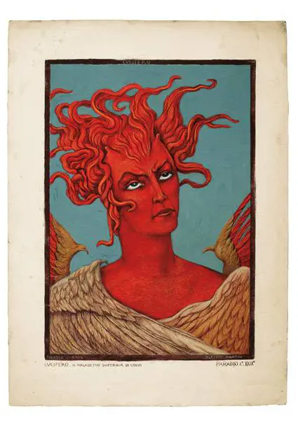 Il realismo di Martini Per le tavole a colori Martini torna a un impaginato realistico accattivante, impiegando tecniche raffinatissime quali "[…] pennelli sottilissimi e tratteggi divisionisti intrisi di colorescenze di grigi perlacei, di rossi carminio, di azzurri e di verdi, alla stregua di un dettato figurale miniato nell’allegorizzare il passo dantesco". Tra tutti va menzionato il meraviglioso busto di Lucifero, la cui forza espressiva rafforzata da una tecnica superlativa ci consegnano un’immagine di grande potenza e intensità. Emblematico, infine, l’ex libris-frontespizio che riassume l’avventura dantesca di Martini proponendo l’autoritratto dell’artista di profilo, seduto al tavolo di lavoro, con alle spalle i tre momenti principali del suo impegno.