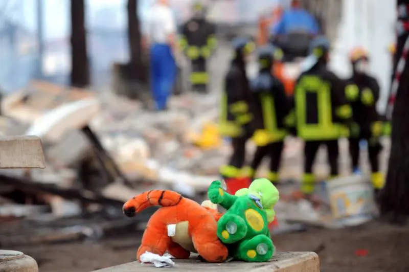 Viareggio - Una bambola a forma di drago e un'altra che rappresenta un leone: entrmbe annerite, entrambe schiacciate dalle macerie. Una ragazzina con i vestiti in fiamme e un signore scaraventato in un cassonetto dallo spostamento d'aria. Sono alcune delle scene raccontate dai testimoni.
