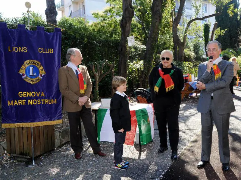 Le prime classi hanno iniziato a radunarsi verso le dieci del mattino nel giardino della scuola sotto un sole caldo che ha accolto gli allievi e le famiglie. Non cè stato bisogno nemmeno di unultima prova prima di entrare «in scena», perché tutti gli alunni avevano imparato linno nazionale a memoria. Dalla prima allultima strofa. Merito delle maestre che li hanno preparati, spiegano gli organizzatori della manifestazione, e merito anche dei piccoli che hanno vinto lemozione e si sono esibiti come cantanti provetti e italiani doc. Poi la lettura del codice delletica lionistica e il saluto del presidente del Lions Club Genova Mare Nostrum, Silvia Levi Terracini, mente organizzatrice di tutta liniziativa. Tra le autorità presenti, anche la più alta carica lionistica del Distretto 108 Ia2, il governatore Carlo Forcina.