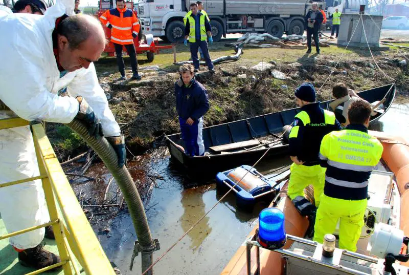 Due imbarcazioni speciali Sono pronte a entrare in azione, in veneto, due imbarcazioni in grado di raccogliere lo sversamento del materiale oleoso. Sono ormeggiate a Porto Levante in attesa di come si evolverà la situazione nel tratto a monte.