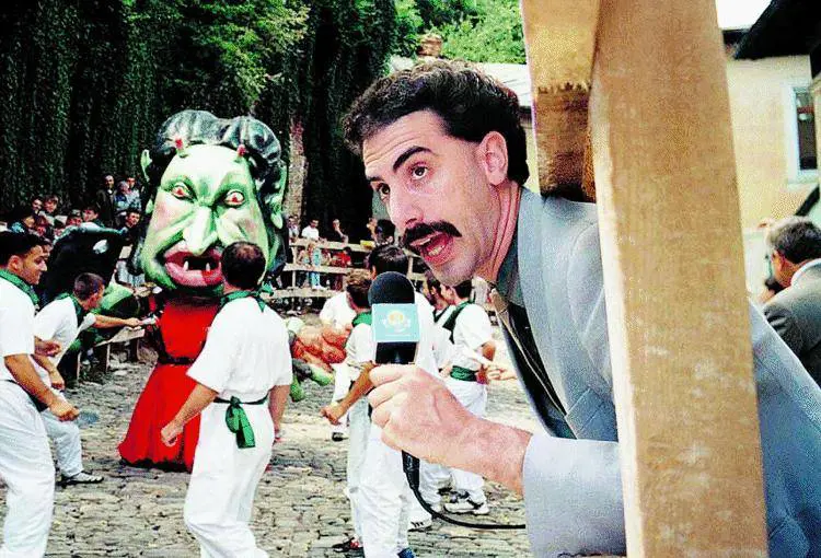 Insegno, invece, confessa di essere più buono. «Dica pure buonista. Nei miei sketch non manco mai di rispetto. Però, passando tante ore accanto a Borat, ho imparato ad apprezzare la sua satira. Lo preferisco al Michael Moore di Fahrenheit 9/11. Lo vedo un po come un mafioso siciliano, baffuto, con tutti gli stereotipi a posto, che attraversa l'America e ne rivela l'ipocrisia. Offende tutti, senza volerlo, alla fine si ritrova solo, accudito solo da una puttana, cicciona e nera. In fondo è un romantico». Certo non deve essere stato facile volgere in italiano, sia pure finto-kazako, alcuni tormentoni. «Kiss kiss l'abbiamo tradotto baciuzz, altri modi di dire li abbiamo conservati: tipo Jagshemash o Chenquieh».