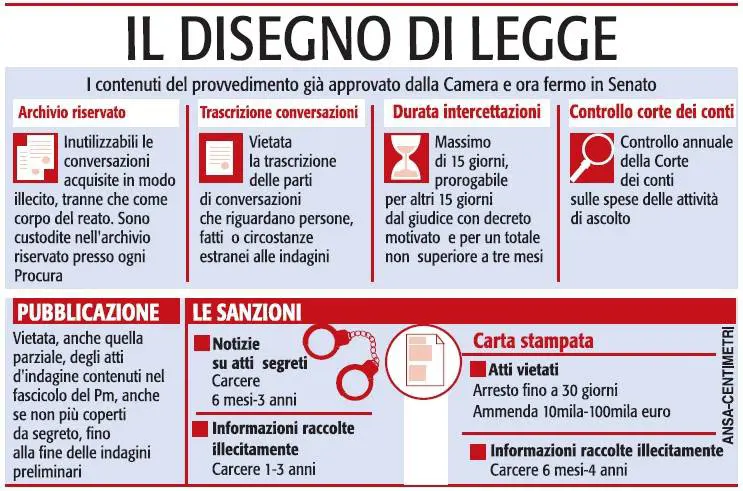 Per quanto riguarda il ddl, c’è il rischio di un ritorno alla Camera. Verranno svolte anche numerose audizioni. «Alcuni rappresentanti di categoria, soprattutto giornalisti - ha chiarito Casson - hanno chiesto di essere ascoltati». Le modifiche dell’ex magistrato verteranno su «normativa sulla pubblicazione e deposito e custodia degli atti».