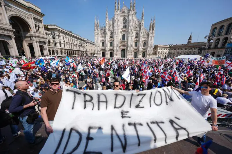 a loro che si rivolge. «Crediamo in Salvini, è uno dei pochi al nostro fianco» ci dice un agricoltore della bassa padana. La grande bandiera con il simbolo della Lega sventola. È la stessa di Pontida. «Noi non manchiamo mai!» dice lo sbandieratore. Molti manifestanti spulciano l'elenco degli interventi, cercano di capire chi siano i patrioti europei. Il più gettonato è il francese Bardella. Deputati e senatori si mischiano tra la folla. Silvia Sardone è carica. Claudio Durigon fa selfie tra i fans mentre Laura Ravetto, insieme ad altre donne, sfila con un lungo striscione. Si sarebbe dovuto parlare di remigrazione, ma alla fine in piazza Duomo si è parlato di tutto quello che non va. Di come cambiare l'Europa, un'Europa che «non deve rompere i cogl**ni ai Paesi sovrani» per citare il leghista Claudio Borghi che, circondato dai manifestanti, imprecava contro l'Unione Europea. Ci tiene ad aggiungere altro. Prendiamo appunti: «Bisogna far capire a qualche nostro alleato che non vogliamo essere moderati. Essere moderati non paga, se giochiamo con queste regole europee non ne usciamo vivi». Un avviso agli «amici» di Forza Italia? Fa spallucce.